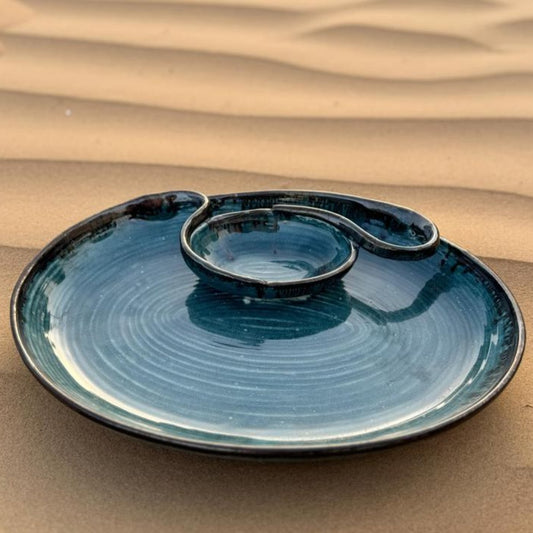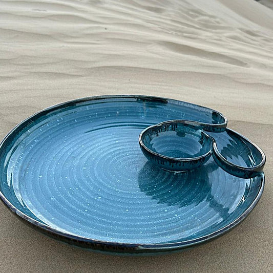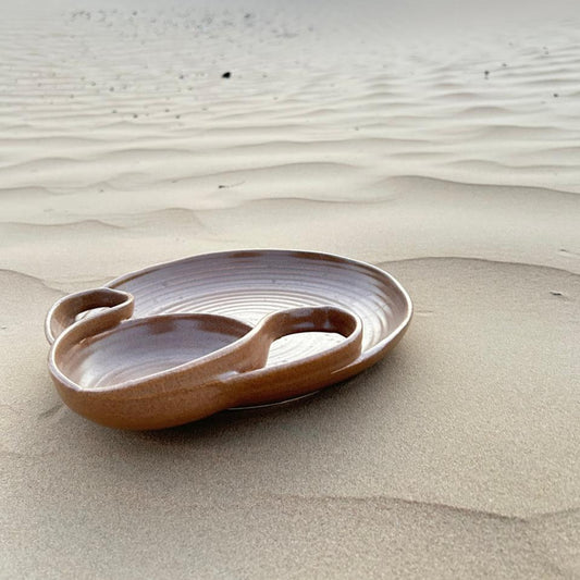 Desert Art – Handcrafted Brown Ceramic Chip & Dip Platter