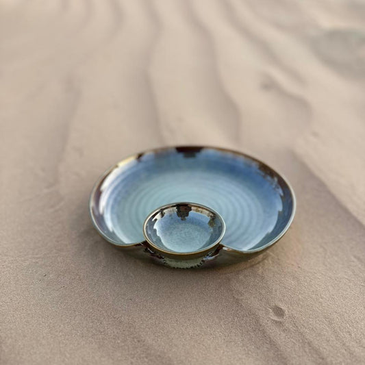 Halaqah Blue Platter – Handcrafted Spiral Chip & Dip Serveware