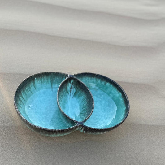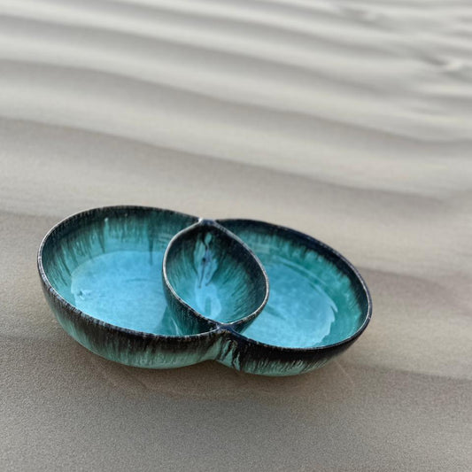 Elysian Trio – Artisan Double Chip & Dip Ceramic Serving Bowl