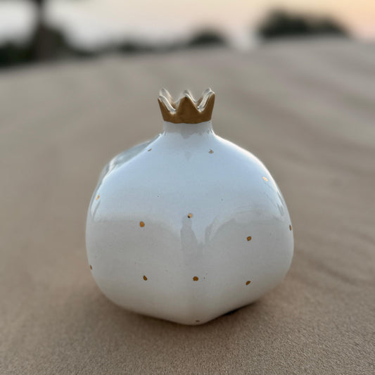 Patience & Trust Calligraphy Lidded Ceramic Pomegranate – Ivory