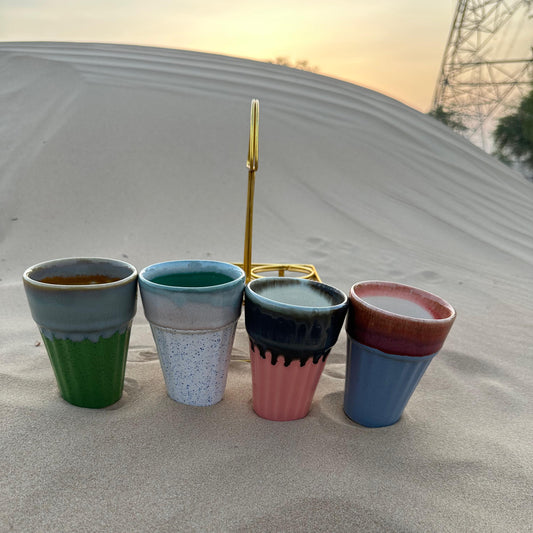 Artisan Chai Glasses - Set of 4 with Metal Stand