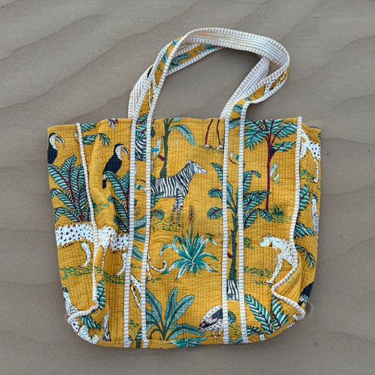 Amaya Jungle Stitch Tote Handbag– Hand Block-Printed Cotton