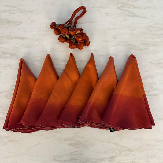 Rust to Maroon Ombre Napkin Set with Handcrafted Floral Ties – Set of 6 (50 cm Diameter)