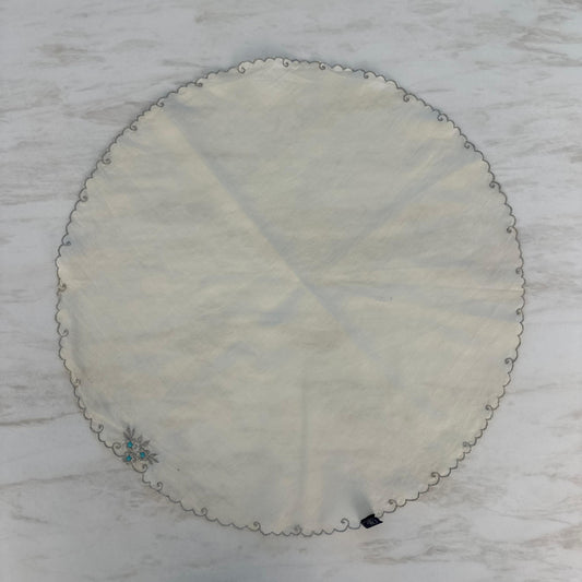 White Round Embroidered Cotton-Silk Napkin Set – Set of 6 (50 cm Diameter)