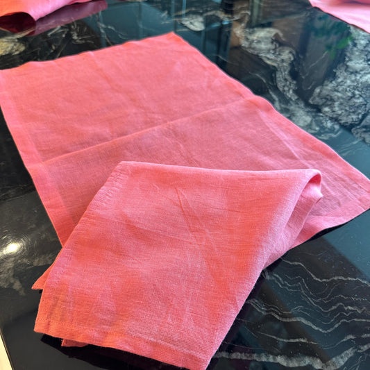 Pink Handwoven Linen Table Napkin & Placemat Set – Set of 12