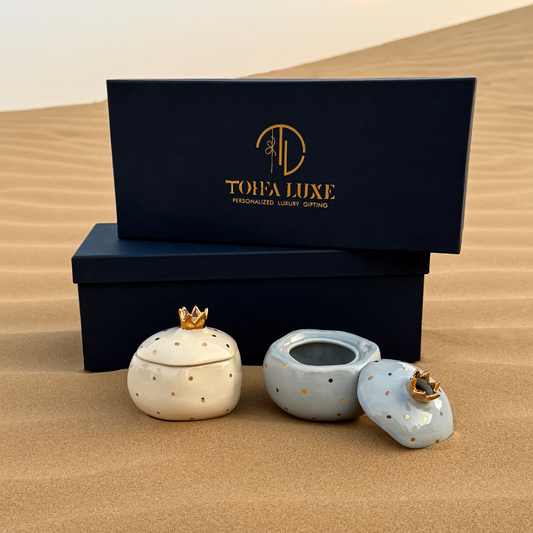 Sculpted by hand over days of meticulous artistry, each centrepiece is a singular creation of luxury and soul. No two are alike — every curve and detail tells the story of patience, craftsmanship, and timeless beauty. Designed to command presence, these statement pieces embody Tohfa Luxe — The Art of Gifting and Living.