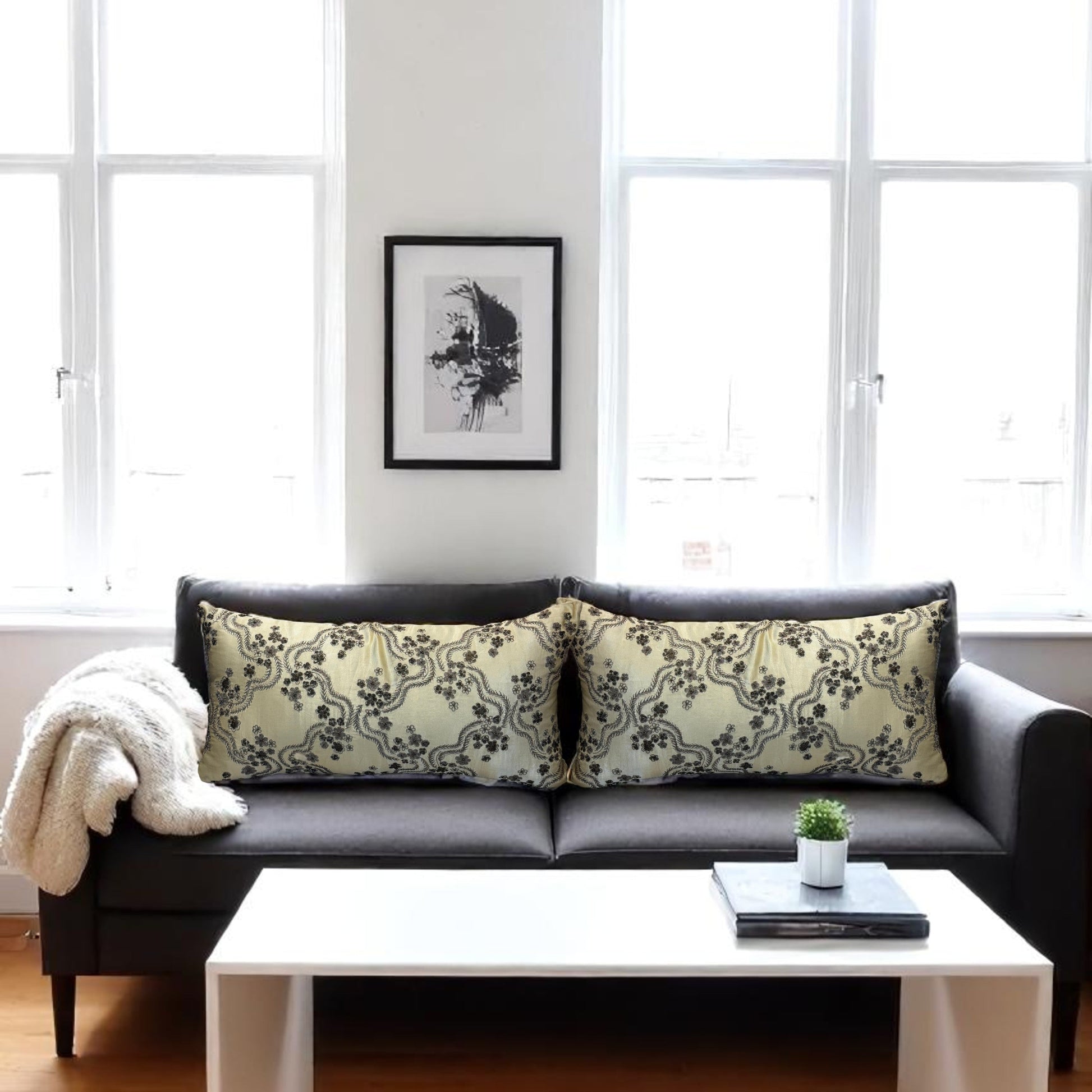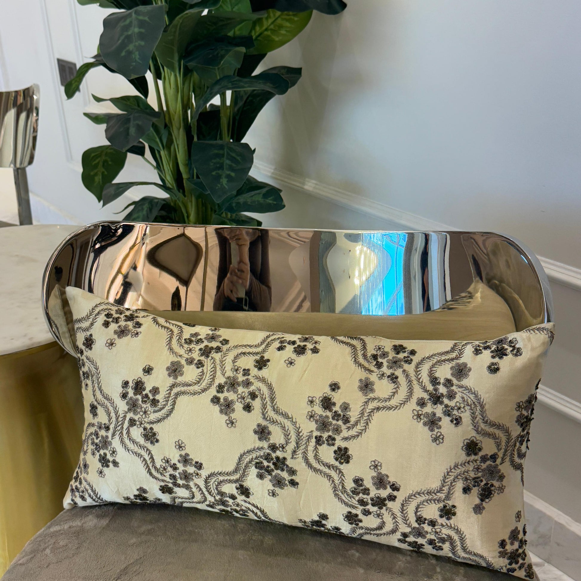 Beige & Gold Handwoven Silk Cushion – 30 x 60 cm