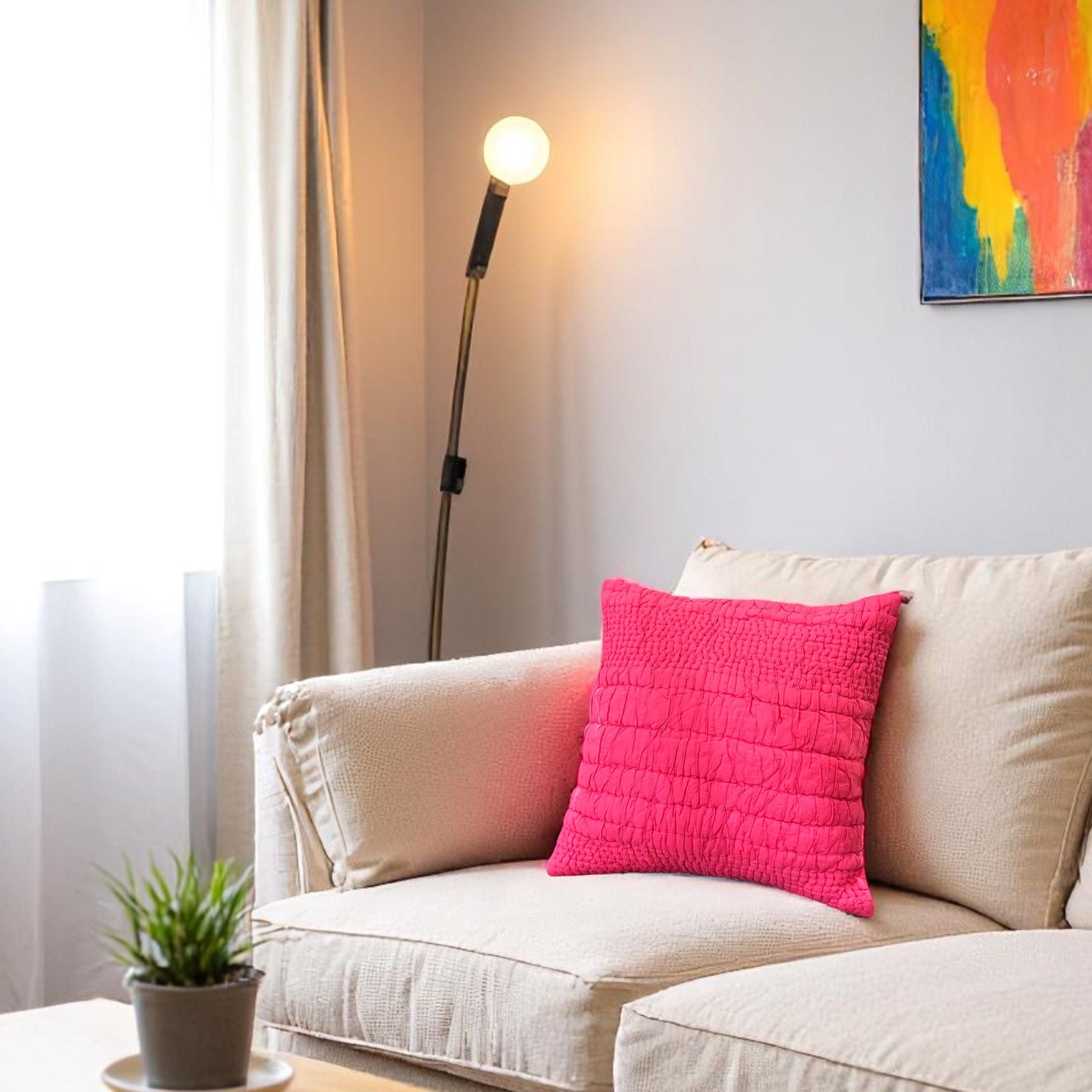 Pink Hand-Quilted Cotton Cushion – 45 x 45 cm