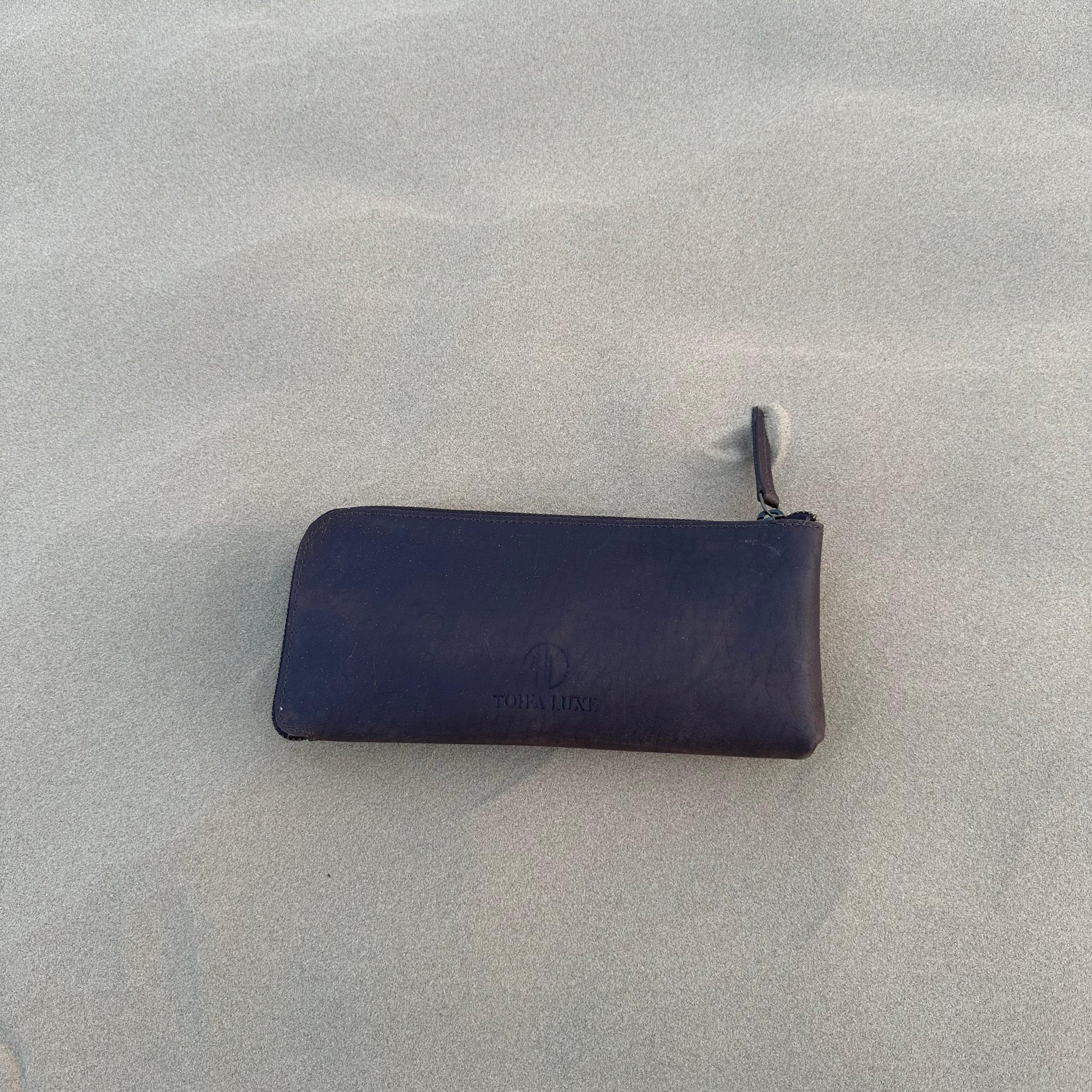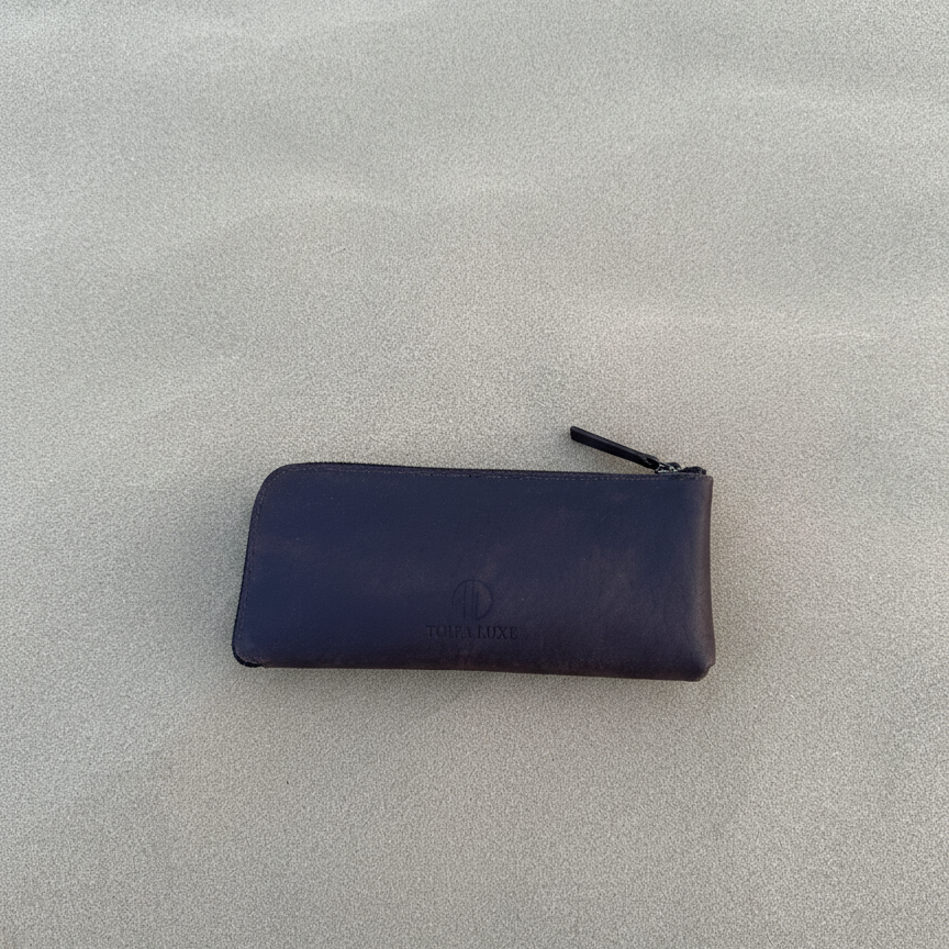 Stay organized in style with the Handcrafted Genuine Brown Leather Zipper Pouch by Tohfa Luxe. Made from premium brown genuine leather, this sleek pouch (23 x 10 cm) features a smooth metal zipper and versatile design — perfect for stationery, makeup, tech accessories, or travel essentials.