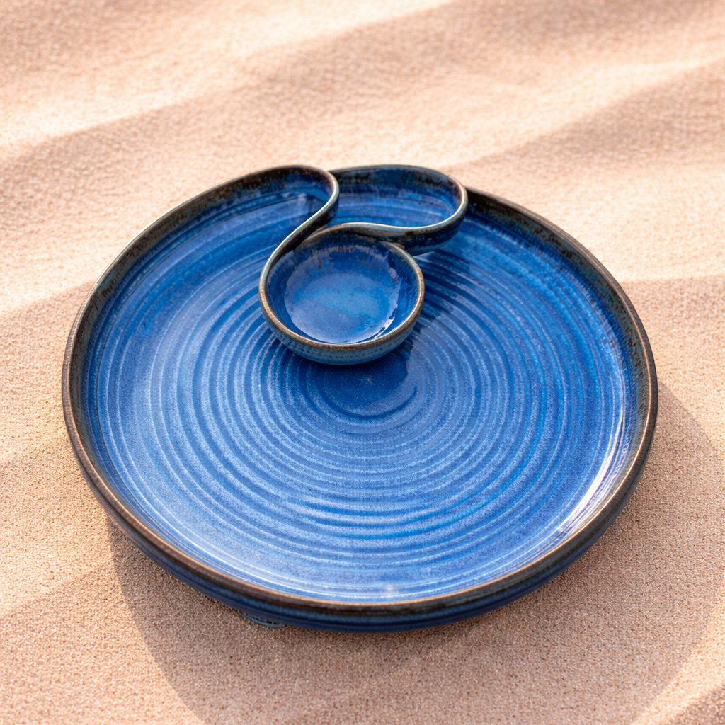 Tohfa Luxe Lujain – Handcrafted Powder Blue Chip & Dip Ceramic Platter