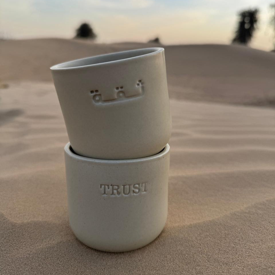 Bring calm and confidence into your daily rituals with this handcrafted ceramic cup, beautifully engraved with the word “Trust” in both English and Arabic. A symbol of faith, balance, and inner strength, this cup blends meaningful design with timeless elegance.